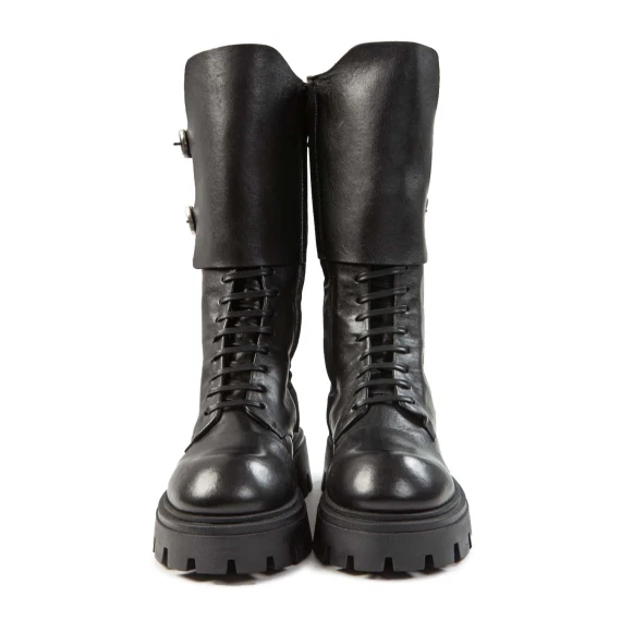 stivali anfibi in pelle nera
